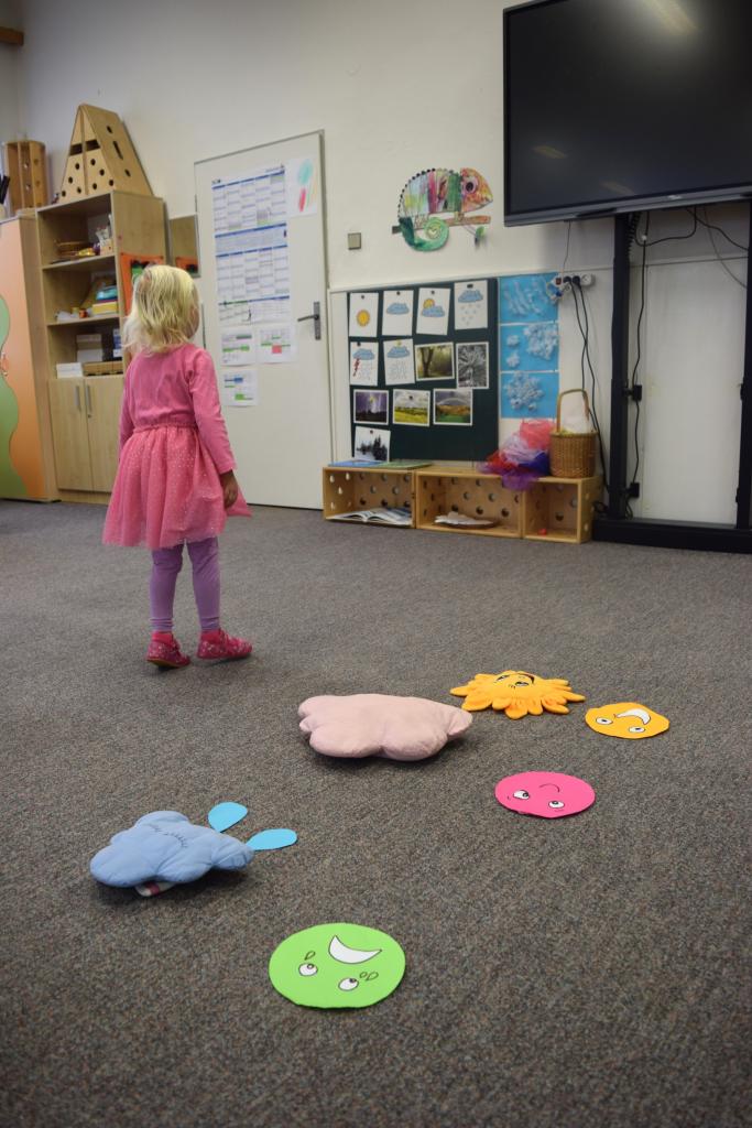 Děti se učily rozlišovat a pojmenovávat různé druhy emocí. Emotikony počasí nám k tomu byly také nápomocny- děti hledaly logické souvislosti. Učily se vnímat emoce druhých a empaticky na ně reagovat.