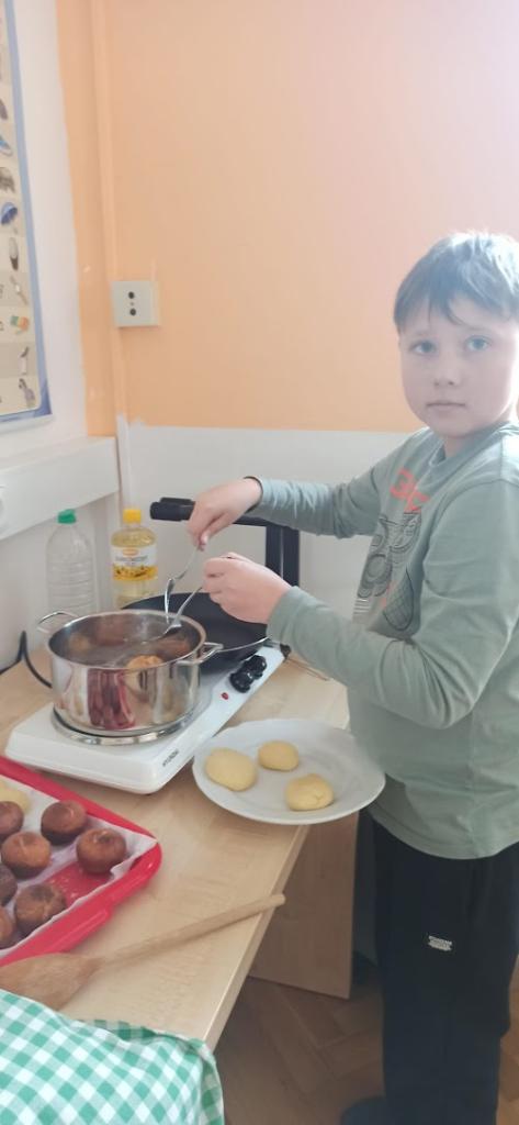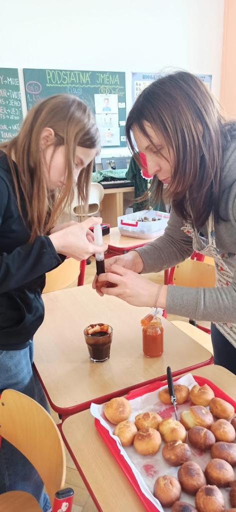 V rámci hodin prvouky a přírodovědy jsme s žáky prozkoumali další masopustní tradici- smažení koblížků a karneval masek.