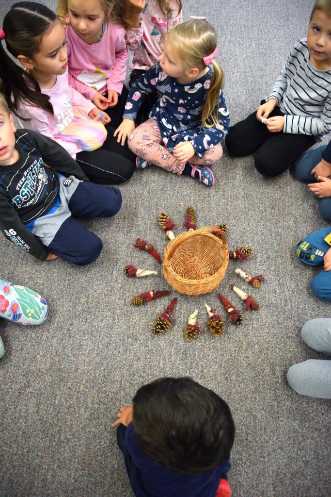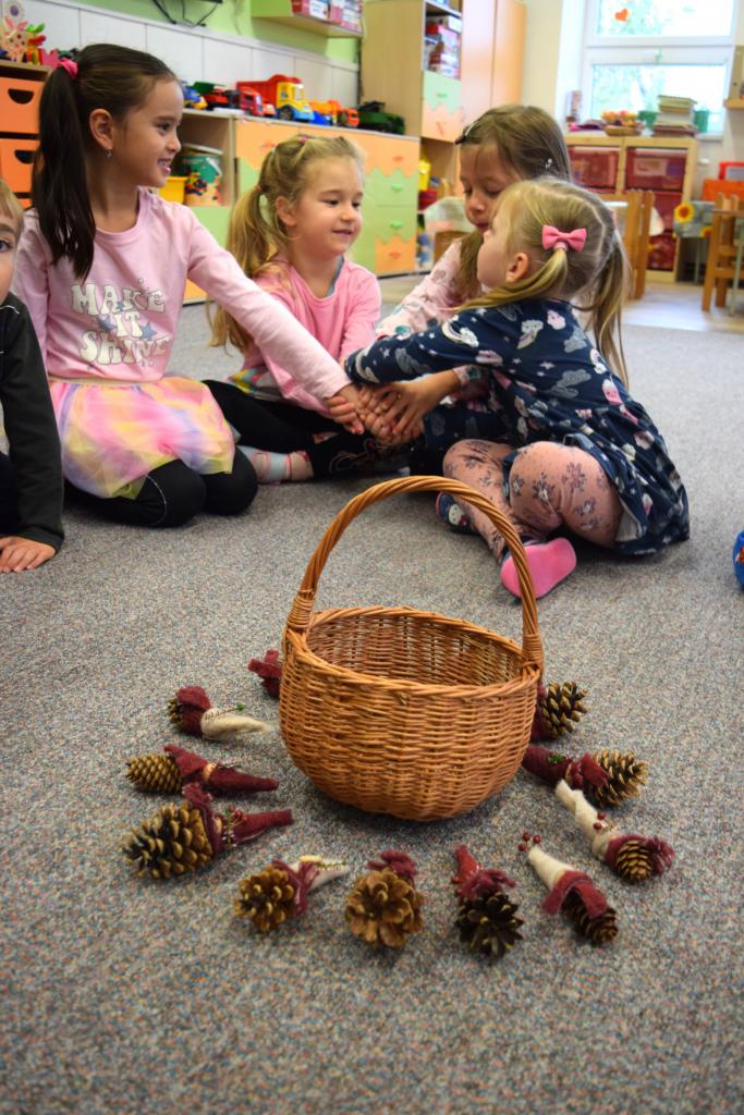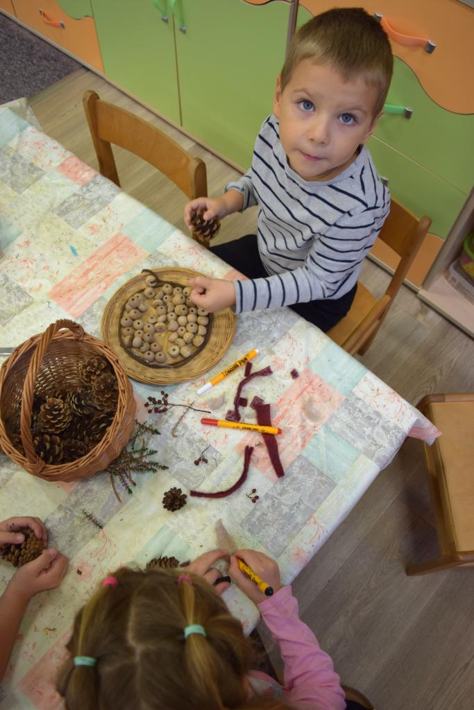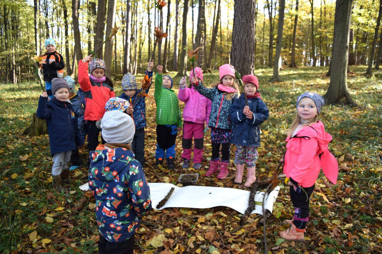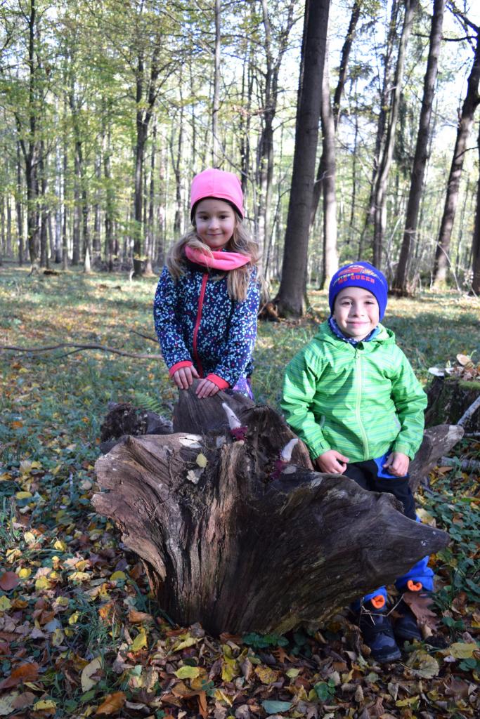 Postavit svému střítkovi domeček v lese, vyrobit si "štětec" z toho, co les dal a namalovat si obraz blátem. Ale hlavně obdivovat krásu lesa. To byl náš projektový den v MŠ.