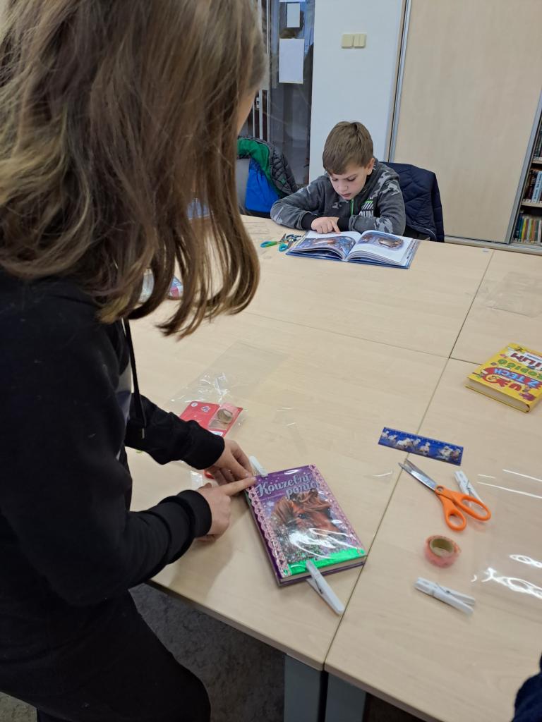 V úterý 7. 3. jsme se žáky ZŠ zavítali do obecní knihovny, kde si pro nás paní Eva připravila aktivity a mohli jsme si vytvořit vlastní obal na knihu. :)