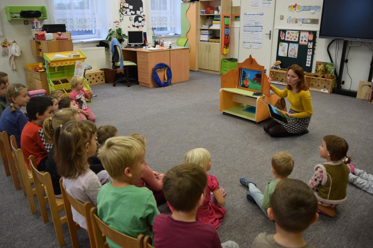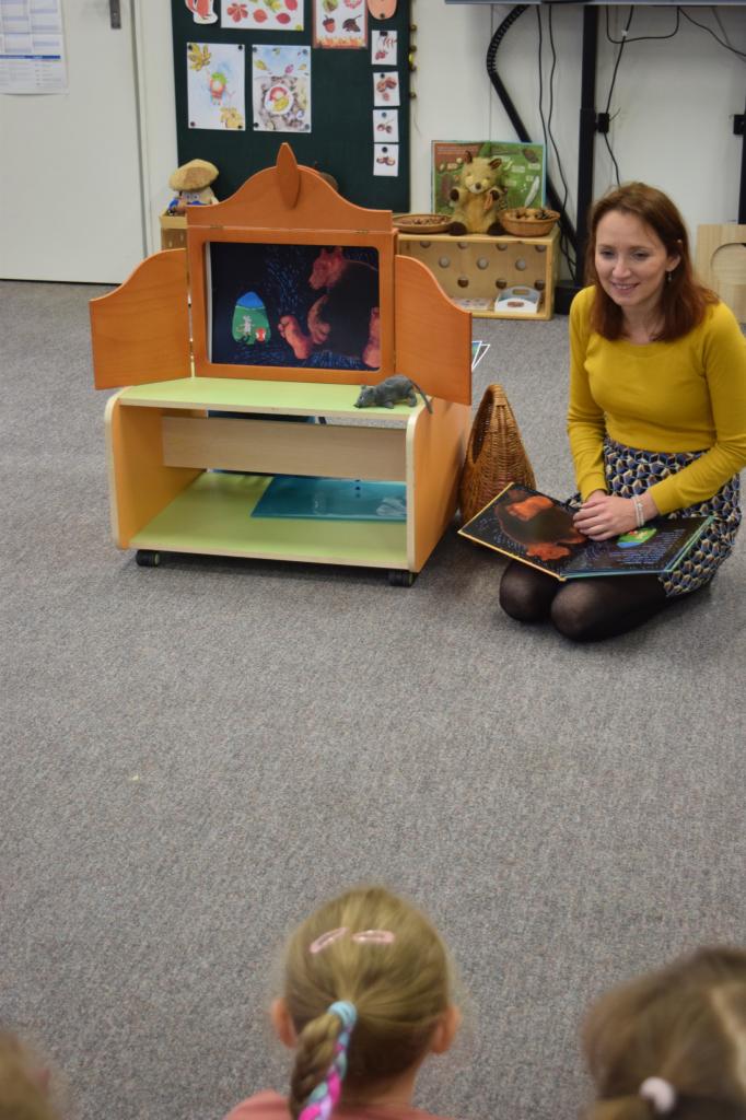 Naši MŠ navštívila paní knihovnice z VM, která děti pomocí Kamishibai divadélka seznámila s pohádkou Petra Horáčka Nový domek pro