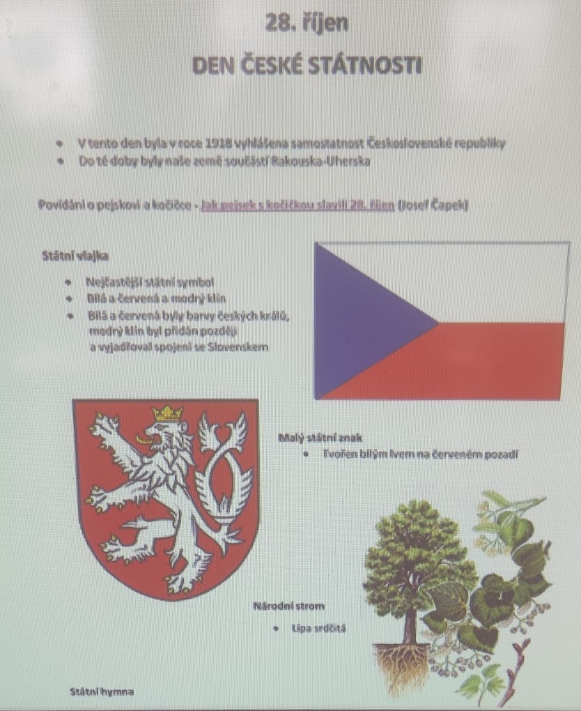 Dnes jsme si ve škole připomněli velmi významný den, který je zároveň státním svátkem- Den vzniku samostatného československého státu. V rámci hodiny žáci plnili nejrůznější úkoly, které jim tento den názorně přiblížily.
